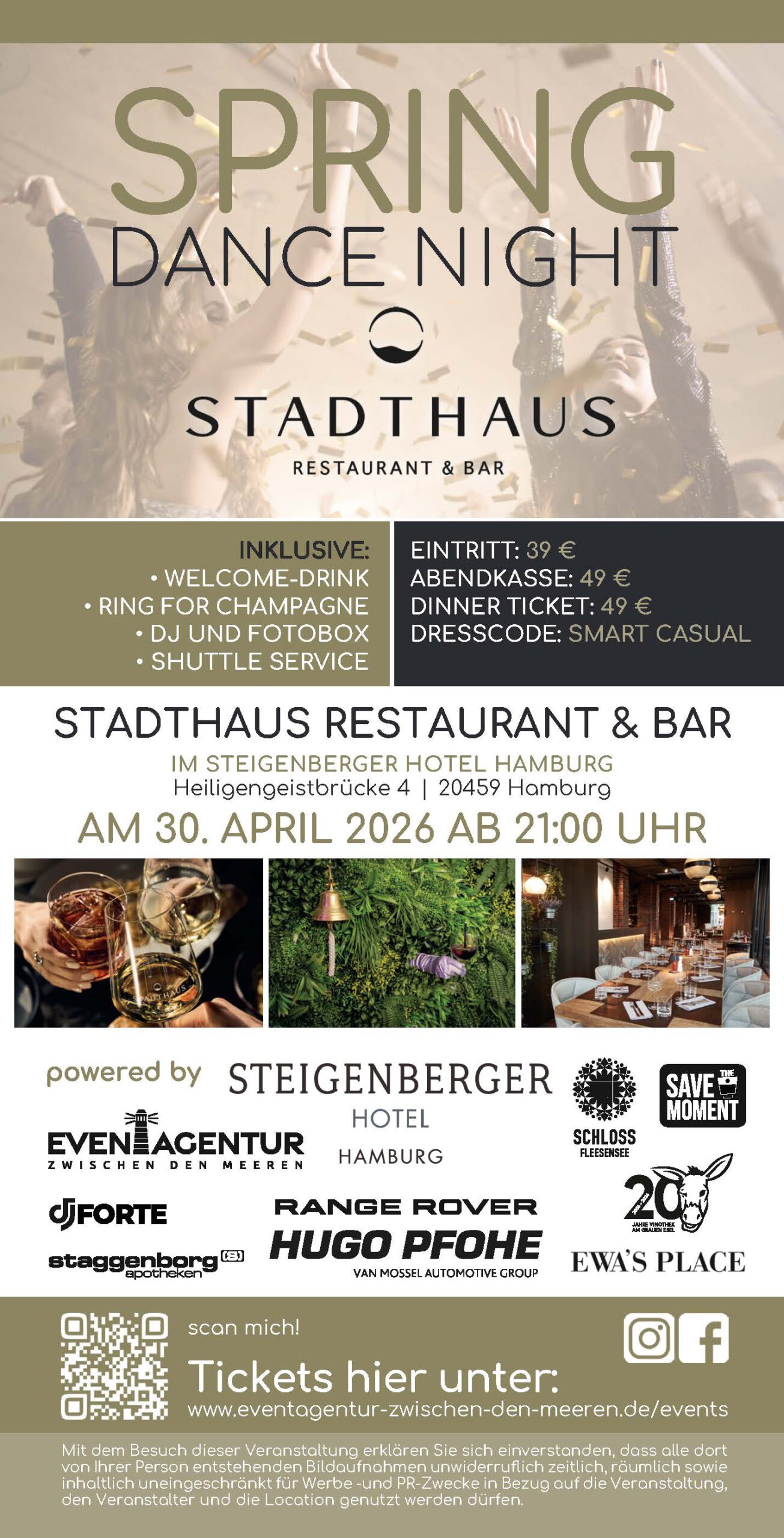 Der Dresscode für die „Dance Night – Spring Edition“ ist Smart-Casual.
